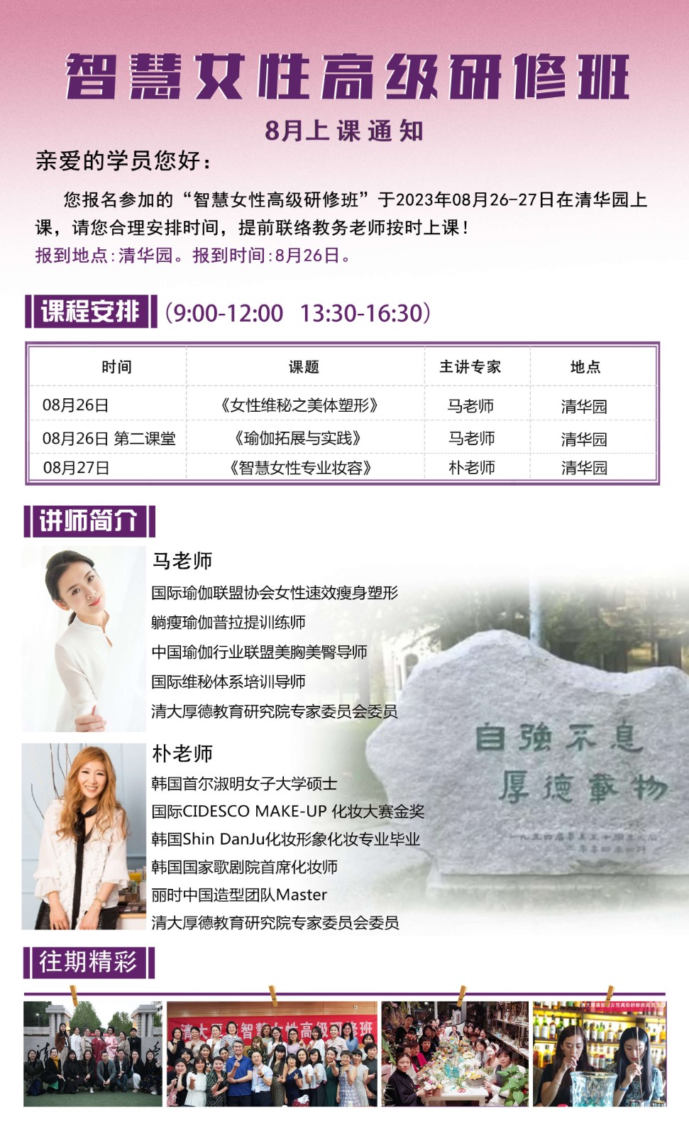 2023年8月清大智慧女性班课程安排