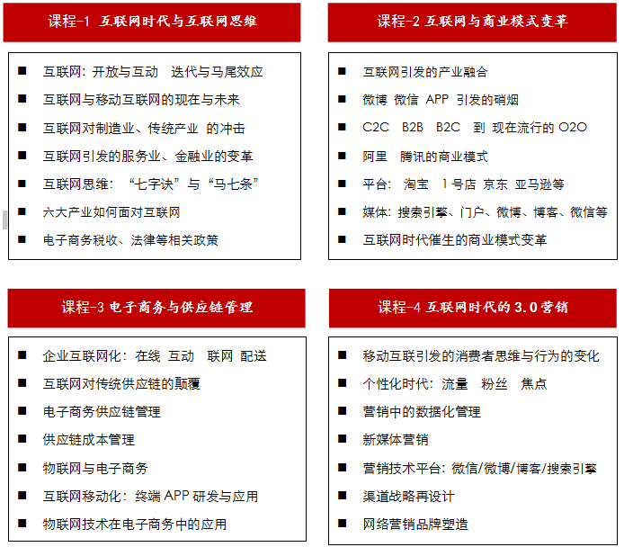 人类进入信息化时代以来,每一种新技术的出现,都会催生新的商业模式并促使商业模式发生变革。如今,互联网技术正在颠覆很多行业现有的商业模式和市场规则!清大互联网时代的商业模式变革研修班旨在使学员领略前沿理念,学习支撑快速物流的背后的精益管理,了解京东快速发展的动力