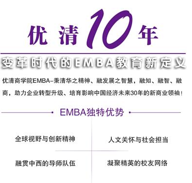 优清商学院EMBA秉清大之精神、融发展之智慧、融知、融智、融商,助力企业转型升级,培育影响中国经济未来30年的新商业领袖。